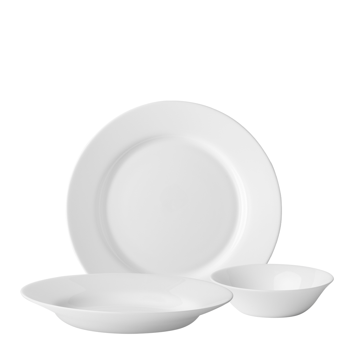 Praktikus készlet tartós opálüvegből. Az időtálló, kerek formájú tányérok és tálak havfehér színe bármilyen otthonba illik. Az opálüveg különleges hőkezelésnek van kitéve, így nagy ellenállást biztosít a mechanikai sérülések, ütések és rázkódások ellen. Ennek köszönhetően kedvelt az mindennapi családi étkezésekhez. Teljesen sima felülete nem tartalmaz semmilyen mikroorganizmust, így 100% higiénikus. Mosogatógépben és mikrohullámú sütőben is használható.