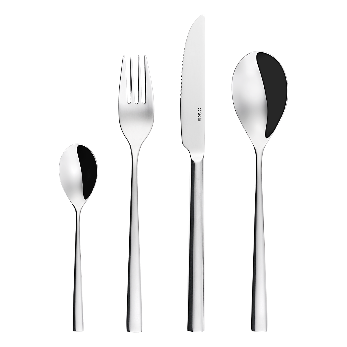 A Master Chef kollekció London evőeszközkészlete kiváló minőségű termékválaszték, amelyet az igényes vásárlók követelményeinek a figyelembe vételével fejlesztettünk ki. Ez a kollekció a tálalás összes szükséges termékválasztékát tartalmazza. Az evőeszköz szögletes nyélvége és az egyszerű és tiszta vonalvezetése által bármely beltértípushoz illik. A készlet tartalma: -6× kanál -6× kés -6× villa -6× kávéskanál -6x mokkáskanál -6x tésztavilla -6x latte kanál