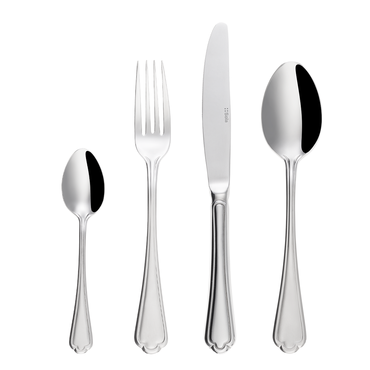 Egyedülálló kivitelezésű hagyományos dizájn, hosszú élettartamot biztosító megerősített 18/10 rozsdamentes acél szegéllyel. A készlet tartalma: 6x kanál 6x kés 6x villa 6x desszertkanál 6x desszertvilla 6x desszertkés 6x kávéskanál 6x tésztavilla 12x mokkáskanál 6x lattekanál 6x leveskanál 2x salátakanál 1x salátavilla 1x tortalapát 1x merőkanál