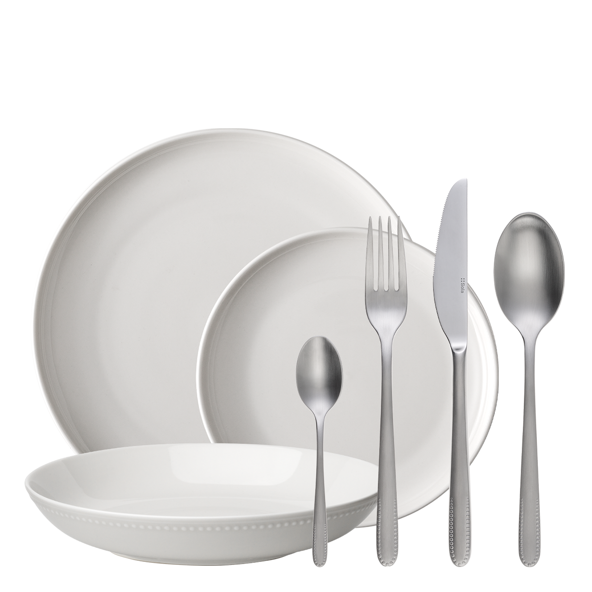 A finom bézs árnyalatok frissességet, nyugalmat és visszafogott eleganciát visznek az asztalra. A porcelán sima felületű, finom dombornyomott részletekkel kiegészítve, amelyek elegáns karaktert és vizuális mélységet kölcsönöznek neki. Kiválóan érvényesül világos, levegős belső terekben, ahol az egyszerűségre helyezik a hangsúlyt. A matt Pearl evőeszközzel, amelyet finom szegéllyel díszítettek, a teljes összeállítás kiegyensúlyozott és harmonikus hatást kelt. E két elem kombinációja diszkrét luxust visz az étkezésbe, és kellemes hangulatot teremt minden alkalommal. Kezdő készlet tartalma: Elements Pearl szett 4× lapos U-Coupe tányér (Ø 27 cm) 4× mély Coupe tányér (Ø 20 cm) 4× lapos U-Coupe tányér (Ø 20 cm) Pearl matt evőeszközök 6× étkezővilla 6× étkezőkés 6× evőkanál 6× kávéskanál