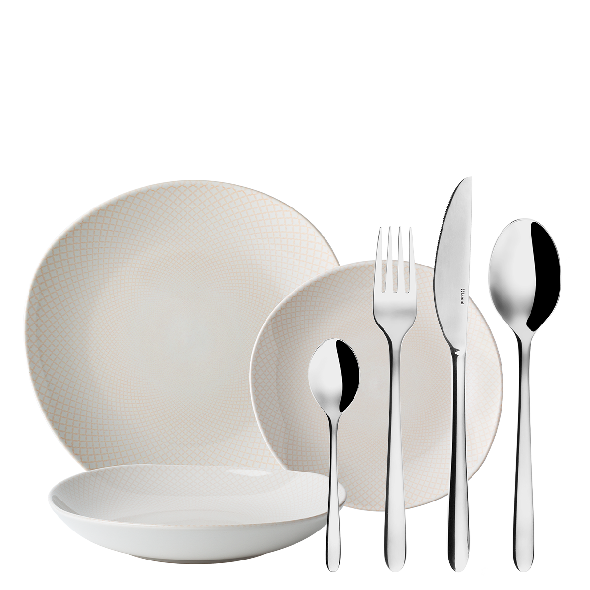 Szereted a nyugodt árnyalatokat és a természetes esztétikát? A finom szürke-bézs porcelánárnyalatok diszkrét textúrával a kő felületét idézik. Az organikus forma természetes hangsúlyt, egyszerűséget és egyensúlyt visz az étkezésbe. A fényes evőeszközök sima fogantyúval tisztaságot és időtálló dizájnt adnak hozzá. E két elem kombinációja kiegyensúlyozott anyagkontrasztot teremt, amely modern és minimalista belső terekbe egyaránt illik. Ideális azoknak, akik a természetes szépséget és eleganciát keresik a mindennapi étkezésben. Kezdő készlet tartalma: Elements North Organic Structure szett 4× lapos Coupe tányér (Ø 27 cm) 4× mély Coupe tányér (Ø 23 cm) 4× desszert Coupe tányér (Ø 20 cm) Montreal evőeszközök 6× evőkanál 6× étkezőkés 6× étkezővilla 6× kávéskanál 6× mocca kanál 6× süteményvilla 1× tortalapát 1× salátás kanál 1× salátás villa