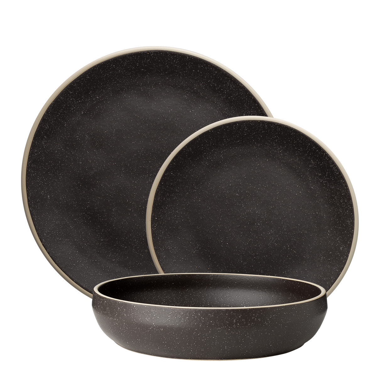 A Gaya Elements Terra North készlet a titokzatos északi éjszaka hangulatát hozza el étkezéseihez. A sötét felülete mély, szinte fekete árnyalatot ölt, finom texturált megjelenéssel, amely a csillagos égboltot idézi. A készlet figyelemfelkeltő dizájnja minden étkezést különlegessé varázsol, és eleganciát ad az asztalhoz. A készlet tartalma: 6 db lapos tányér Coupe 28 cm 6 db desszerttányér Coupe 22 cm 6 db mély tányér U-Coupe 22 cm